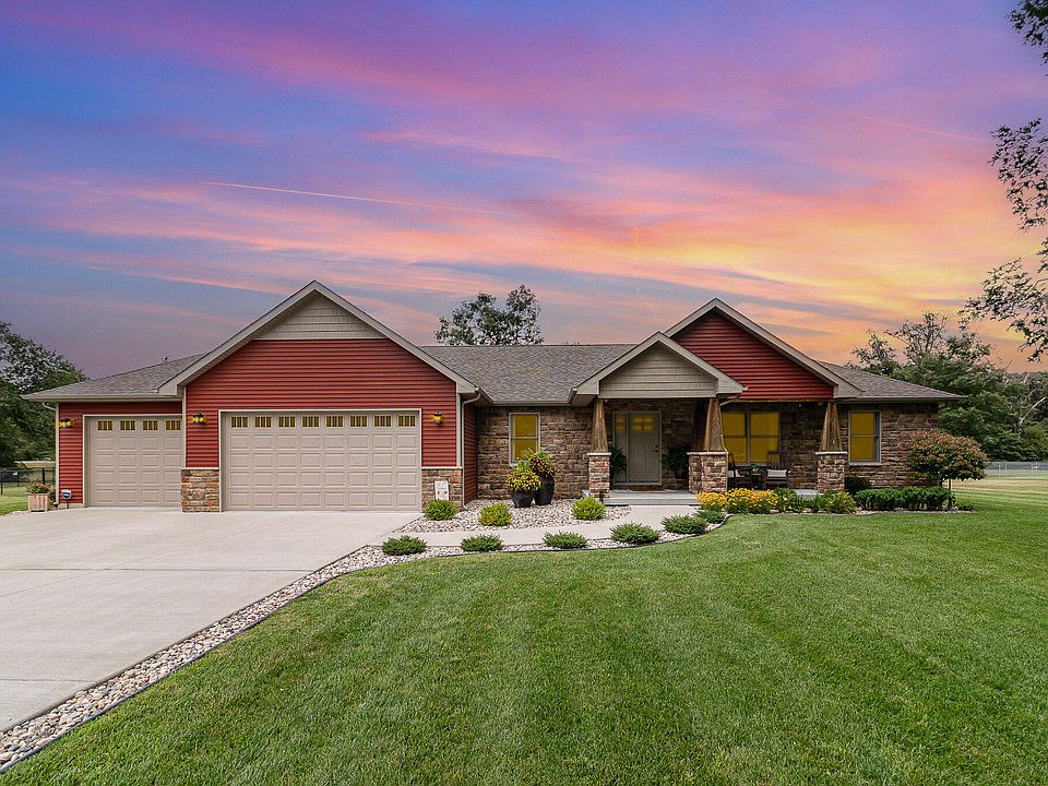 Your new home search ends here! This immaculate, like-new, ranch home located on a sprawling 2.3 acre lot is an incredible ownership opportunity you do not want to miss! The open concept main level features gleaming wood laminate flooring, cathedral ceilings, and ample natural light that creates an inviting atmosphere. Perfect for hosting friendly gatherings with your loved ones. Let your inner chef shine in the stunning kitchen with chic cabinetry, granite counters, all stainless steel appliances, an island for added meal prep surface, and a closet pantry for convenience. The sun room is an added bonus to relax in with your latest book and give your house plants an environment to thrive in! The primary suite will easily become your own personal oasis with cathedral ceilings, a private 5pc en-suite that will make you feel like you're at the spa, and access to your back covered deck that overlooks your patio and expansive backyard! An added bonus is the newly built 10x28 greenhouse with a 14x28 storage shed w/ 220 volt service and 4,000sqft fenced in garden area already set up for you! The back yard also has a fenced in dog park for your pets to safely enjoy the outdoors. A few more features to note is that the main parcel has a smart irrigation system with 93 heads, there is 2 additional wells, and various fruit trees for you to enjoy. This home is the perfect setup for having the ability to upgrade your current garden situation, and enjoy peaceful living both indoors and outdoors. This deal includes an additional taxable lot that can be built on (right next to the home). With too many amazing features to mention, come see how perfect this beautiful home will be for you, today!