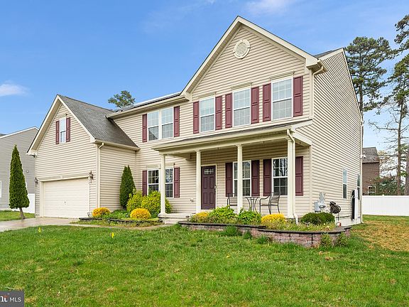 Enter into luxury with this stunning 5-bedroom, 3.5-bathroom colonial boasting over 3000 square feet of meticulously designed living space. Adorned with a charming covered front porch and a convenient two-car garage, this home welcomes you with open arms. As you enter, be greeted by the warmth of beautiful hardwood floors that stretch throughout. To the right, discover a double-door office, perfect for remote work or study sessions. To the left, an elegant formal dining room seamlessly transitions into the chef's kitchen, a culinary dream come true. The kitchen is a masterpiece, featuring granite countertops, a spacious granite center island with storage, ample oak cabinets, and a suite of updated appliances including a built-in microwave, gas range, and dishwasher. A pantry and bonus breakfast nook with French door access to the backyard add both functionality and charm. The heart of the home, an oversized family room, creates the perfect space for gathering and entertaining loved ones. Completing this level is a full bath and a guest room providing the perfect space for an in-law suite. Ascend to the second level to discover a generous primary suite offering a haven of relaxation with a full bath, double vanity, standalone shower, and a walk-in closet. Three additional bedrooms and a bonus room offer versatility and comfort, while a convenient second-floor laundry simplifies daily chores. The finished basement expands your living options, featuring updated laminate flooring, a half bathroom, and two separate unfinished spaces ideal for storage or a home gym. Plus, enjoy the benefits of a Tesla solar panel system, owned for sustainable energy savings. Head outside to the spacious backyard, complete with a storage shed, offering endless possibilities for outdoor enjoyment and relaxation. Don't miss your opportunity to call this exquisite property home. Schedule your showing today and make your dream of luxury living a reality!