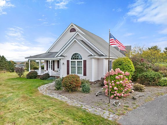 This one-owner Custom-Built Ranch is located in Hermon's Skyway Valley Country Estates subdivision and offers attention to detail, quality construction, and premium finishes throughout. Conveniently located just three miles from Bangor's International Airport and nearby shopping, this established neighborhood is just over the town line, yet this property offers a country retreat feel as it is set back high on a hill on 5 beautiful acres to capture distant views to the Holden hills. The owners put their hearts into creating this home and the grounds, as is evident by elements like the stone wall and split rail fence that runs along the west side of the driveway. This wall appears to have been there for centuries but was built stone-by-stone by the owners. Inside the in-floor radiant heat and Anderson windows create a sun-filled warm environment. The spacious eat-in-kitchen really is the heart of the home, with cherry cabinets, a large center island, granite counters, and a breakfast nook. Patio doors lead to a large easterly facing deck, perfect for greeting each new day. The kitchen flows to the charming dining room niche with tray ceiling and maple floors that continue to the large living room with built-in bookshelves and gas fireplace. The primary suite offers a walk-in-closet and luxurious bath with lots of cabinet storage, jetted tub and separate shower. Worthy of note are the wide doorways, hallways, and level entries that were designed for aging in place. Ample cabinet & closet storage were well planned as linen, coat, and pantry closets are right where they make sense. Completing the home's circular floor plan is an office just off the kitchen, handy for working from home. The oversized 2-car garage offers an additional office/workshop, a walk-up attic (for storage or expansion), generator hook-up, and a radiant heat zone (not currently in use). Fenced area and shed were used for a protected vegetable garden. Schedule a tour of this exceptional ranch today.