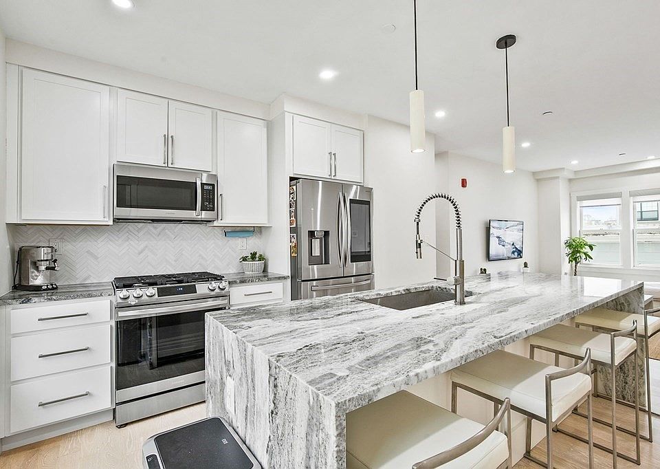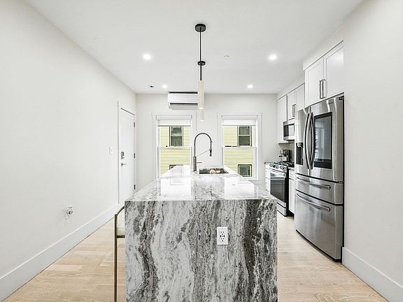 Enjoy boutique living conveniently right outside of the city. This three bed two bath is in a newly built condominium complex featuring five efficiently crafted units with luxury finishes. This unit includes two off-street covered parking spots and a shared roof deck, perfect for entertaining friends and family. Walk into a bright and airy modern open-concept floor plan with an oversized island and quartzite countertops. Equipped with Smart Samsung appliance package, a marble backsplash and custom shaker cabinets. Additionally there’s wide plank oak flooring, recessed lighting, and Marvin windows. The laundry room features an LG in-unit washer/dryer with extra storage space, 4 high efficiency mini-split systems, an individual Navien on demand hot water tank, and deeded storage room. Within close proximity to public transportation, newly acclaimed restaurants like Chao Pizza, Chelsea Station, classics like Katz Bagels, and the City of Boston, 52 Spencer Ave offers unmatched living value