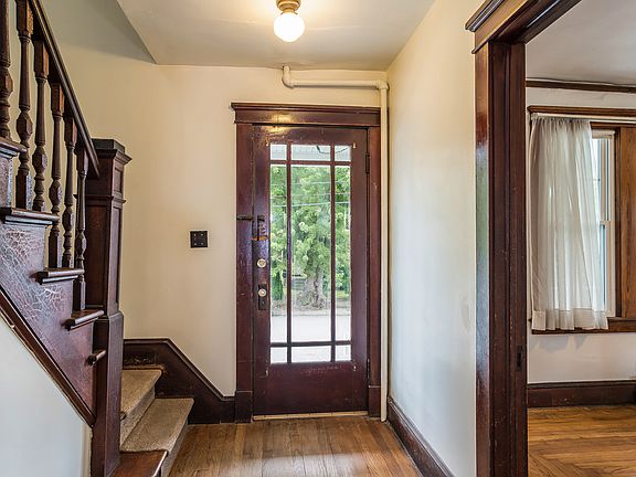 A craftman style home with all the character from the early 1900's, a covered porch, wide board moldings, oak flooring throughout the living room, dining room and bedrooms. The main floor contains kitchen, formal dining area, living room and mud room. The second floor contains three bedrooms and full bathroom. A large two car detached garage as well as a full walkout basement allows for extra storage.