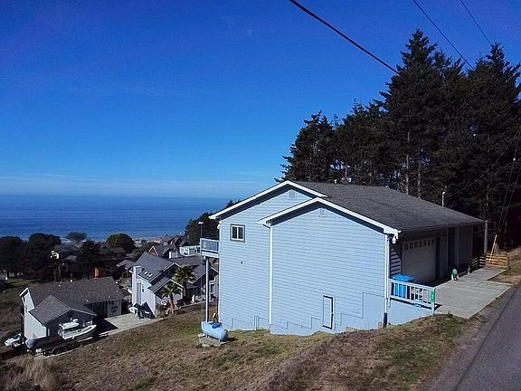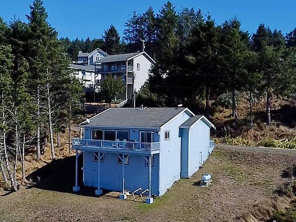 Absolutely captivating elevated view of the ocean & entire Lower Shelter Cove is the center of attention here! Well maintained home designed for the views, this 2 bedroom 3 bathroom home features ocean views from all rooms you'll spend time in. Main level has beautiful hickory wood flooring, open floor plan with kitchen, dining, & living areas plus a full bathroom. Lower level has two en-suite bedrooms, & a bonus room off of the utility room. Attached over-sized 2-car garage has plenty of room for work benches & outdoor adventure gear. Literally unobstructed views of the airstrip, golf course, & wide open ocean, you'll lose track of time watching migrating whales spout, big waves, & planes coming & going. On a street-to-street lot with no adjacent neighbors & only 3 homes on Spruce Road!