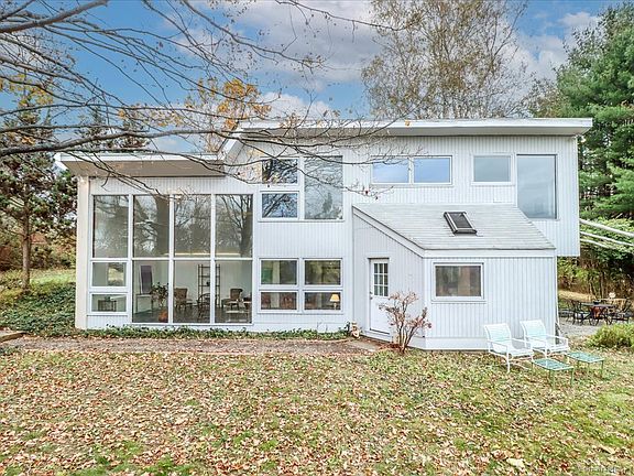 A Peaceful Contemporary Retreat in the Heart of Litchfield Hills! Welcome to your private escape in the highly desirable Merryall neighborhood, nestled in the enchanting Litchfield Hills-one of the most picturesque places to be during Connecticut's stunning fall season! This delightful 2-bedroom, 2-bath contemporary home sits on 1.8 acres of serene land with breathtaking views that change beautifully with the seasons. Whether you're looking for a cozy starter home or a peaceful weekend retreat, this move-in-ready gem offers vintage charm with plenty of potential to personalize. Step inside and be greeted by a wall of windows that flood the space with natural light and frame the scenic landscape like a work of art. The open layout flows effortlessly to a bluestone patio-perfect for morning coffee, evening wine, or simply soaking in the tranquility. You will find ample closet space and an oversized garage that easily accommodates all your storage needs. Recent updates include a brand-new range, washer and dryer (all included), freshly painted interior walls, and refinished upstairs floors. Plus, a new oil tank has been installed in the garage, replacing the previous underground tank. There's even room to expand if you desire-making this charming home not just a place to live, but a place to grow.