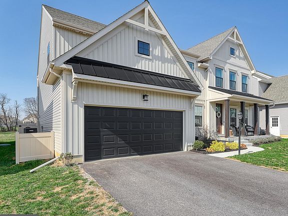 Welcome home! PRICE REDUCED. Set up your showing for this all but new Hawthorne Farmhouse floorplan constructed by Keystone Custom Homes! This home is nestled in the heart of Cumberland Valley school district providing easy access to the area's top shopping, highways, and entertainment. The 1st floor features an open concept, with a living room, chef's kitchen, dining room, family room, as well as a first-floor study currently being utilized as a child’s playroom and a full bathroom for convenience. The kitchen is a chef’s dream with its beautiful white subway tile backsplash, quartz countertops, large island with seating for two, farmhouse sink, gas stove, double wall oven, and high-end appliances. Engineered Vinyl Plank throughout the entire first floor flows seamlessly into the family room with the wall of windows that provides natural light throughout the entire home. The 2nd floor features, four extensive bedrooms, 2 full baths, and laundry room. The 2nd floor balcony is open to the 1st floor and has a beautiful view of the green space through the wall of windows! The primary bedroom offers his & hers walk in closets with its own en suite bathroom with an extensive walk-in shower with dual heads and a built-in bench as well as a double vanity, Full basement insulated and ready for your imagination. Motivated seller can accommodate your choice of closing date!