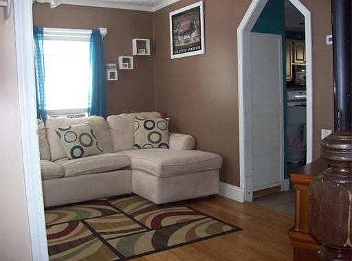 Beautiful, updated 3 bedroom with the possibility of a 4th bedroom on the first floor. Nice, hardwood floors throughout, open concept kitchen with ceramic tile floors that flow into the dining room and Freshly painted. Small, enclosed yard with good sized deck, perfect for grilling outside. Property is in excellent condition.