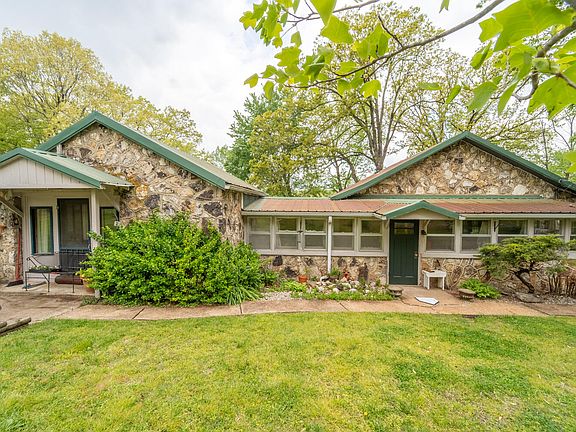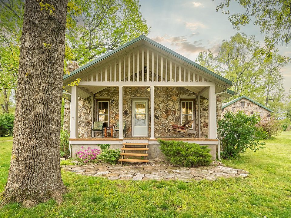Welcome to your dream home! This beautiful property offers a unique blend of town and rural living, with a picturesque park-like setting on a spacious 2.61-acre lot m/l. The house itself boasts a quaint charm with original pine flooring and native stone construction, and a unique layout that you won't find anywhere else. Inside, you'll find all the modern amenities you need, including two bedrooms and two full bathrooms and plenty of storage space. The ceiling fans keep you cool in the summer, and the large covered front porch is perfect for relaxing and enjoying the scenery. Property is heated and cooled with a nice central air system. You can also cozy up to the fireplace when the temperatures start to drop. If you're looking for a space to work on projects or store your belongings, the basement, garage, and barn provide ample space.But, that's not all! This property also includes a sunroom that's perfect for growing plants or just enjoying the sunshine. And, with tons of mature trees, you'll feel like you're living in your own private oasis.Located just on the edge of town, this property offers the best of both worlds-the convenience of town life and the acreage of rural living. Don't miss out on this opportunity to make this beautiful house your forever home!