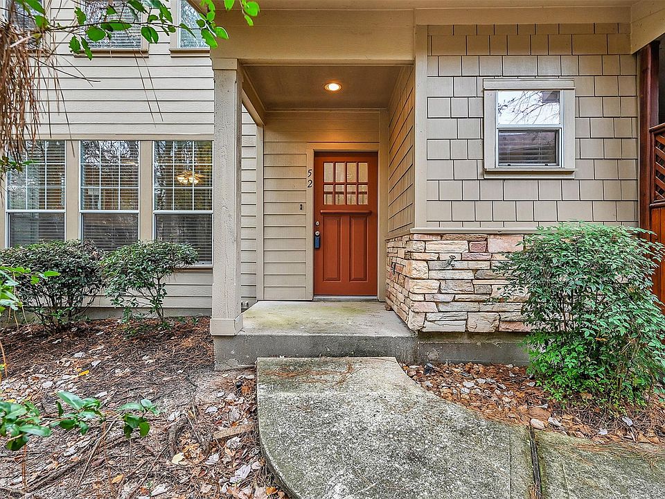 **WELCOME HOME TO THIS RECENTLY UPDATED CHARMING CRAFTSMEN STYLE CONDO**2-STORY 2 BED/2.5 BATH/2-CAR GARAGE ON A BEAUTIFUL CUL-DE-SAC**LOVELY STONE ACCENTS** Each bedroom has its own bathroom, high ceilings in foyer, nice laminate wood flooring, stack stone gas log fireplace, private patio, lots of storage in kitchen, tiled floors and back splash, breakfast bar, gas stove, refrigerator included. First floor features an open living/dining & kitchen layout feature a 1/2 bath, tons of windows, a gas fireplace, a separate nook perfect for a home office or storage, large eating space with tile flooring, & sliding glass doors for back patio access. The kitchen features an abundance of storage cabinets, SS microwave & gas stove/oven & access to the garage. The 2nd level has 2 spacious bedrooms, both with their own bathrooms & the laundry room. 180-degree privacy with views of trees from 3 sides of the condo & a large 2 car garage. Quick access to 242 and Research Forest.