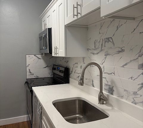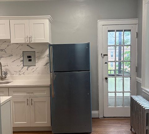 Newly renovated large studio unit in an elevator building located at great location in Brighton bordering Brookline; Minutes of walk to Chestnut Hill reservoir; Steps to Cleveland Circle and B, C and D MBTA green line; Brand new kitchen with modern looking white cabinets, granite countertop and stainless appliances installed. Updated bathroom with new vanity, medicine cabinet and new toilet. Refinished shining hardwood floor through bedroom & living area; Entire unit fresh painted with light earth tone color; laundry facilities in the common area of the building's lower level. Minimum 12 months lease. Heat and hot water are included. Renter is responsible for electricity. No smoking allowed. First month rent, last month rent due at signing.
