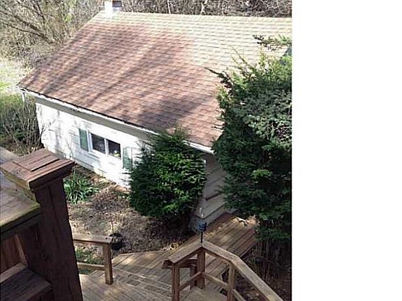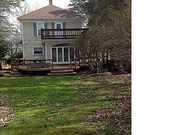This home has lots of character! The charming kitchen has addition with large bay window overlooking a wrap-around deck. The deck steps extend to the garage. Separate laundry room is located on the main floor. Living room/office area has signature pocket doors to close off hallway if desired. Carpeted stairs lead up to 4 bedrooms. Smaller room, could be used as an office, opens up to a deck overlooking a beautiful backyard area. Full bathroom upstairs. Large attic area can be used for storage. Stove, refrigerator, freezer, and dryer all included. New roof - 2011.