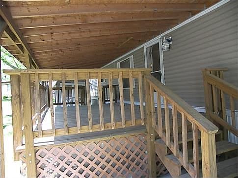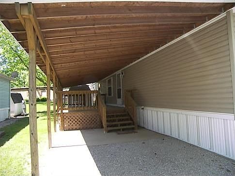 Large 3 bedroom, 2 bath (split bedroom plan) home ready to move in. Big living room with view to the kitchen. Kitchen with all appliances and gorgeous cabinets, plus roomy eating area. Laundry room with cabinets, plus washer and dryer remain. Large Master Suite with corner garden tub and separate shower. Two more roomy bedrooms and a full bath. Skylights in Master bath and in hall bath. Nice big covered deck, and covered carport, plus storage shed. Located in a very nice area of Smithton with park across the street. Lot rent is $235/month and includes trash pickup. Well maintained, Move-in Ready, and Priced To Sell! Give us a call to see this one.