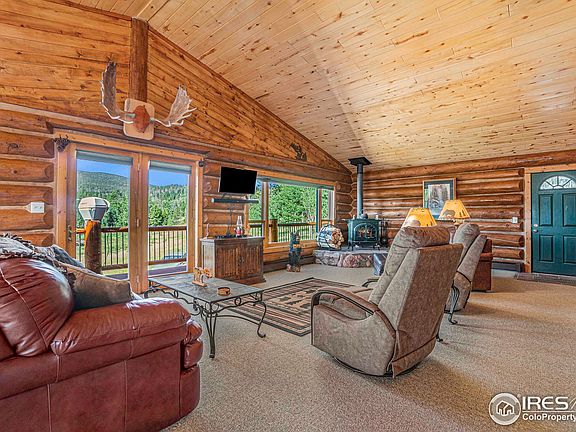 Welcome to your dream mountain retreat in Crystal Lakes! This handcrafted log home is a true gem nestled within the breathtaking natural beauty of Colorado. As you step inside, you'll be immediately captivated by the warmth of 2 wood burning stoves and an inviting open layout. The living area boasts vaulted ceilings and a wall of windows and french doors that frame the incredible views of the aspen groves, pine, and Roosevelt National Forest. Primary bedroom, kitchen, and laundry are on the main level, with 2 bedrooms on the walkout lower level. Wake up to the soft sounds of the nearby creek. For those who cherish outdoor moments, this property features a 1000 sq foot wraparound deck, and a fire ring, perfect for roasting marshmallows and sharing stories under the starlit sky. And keep your camera ready - the area is frequented by moose and various wildlife! The attached 2 car garage provides ample space for your vehicles and outdoor gear. Whether you're a year-round resident or seeking a seasonal escape, this property offers the tranquility and rejuvenation that only mountain living can provide.