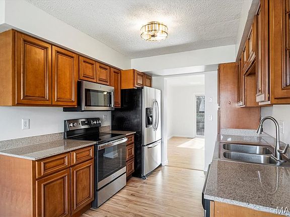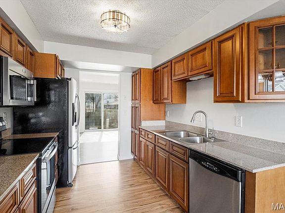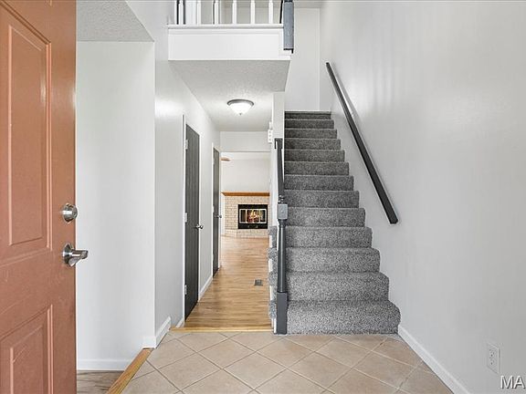 Freshly Remodeled Townhome nestled in a peaceful Cul-de-Sac! Walk into a Grand 2 Story Entry Foyer w/ Beautiful Staircase and Overlook. The Kitchen is accessible from two entrances & boasts Stainless Steel Appliances, Hidden Handle Oak Cabinets, Granite Countertops, Deep Double Bowl Sink & Pull-Down Faucet. New Floors flow throughout leading to spacious Family Room w/ WB Brick Fireplace, & Huge Sunlit sliding glass doors leading to your own Private Fenced Backyard! The Backyard leads further to common ground for larger scale enjoyment and your own assigned Carport! Upstairs You have 2 Sizable Bedrooms. The Primary Bedroom is enormous & has a Large Walk-in closet to compliment. Newly Updated Bath completes the Upper Level. HVAC (2y.o.) & Water Heater (5y.o.). This Home is in a highly sought after area w/ Dardenne Greenway Trail just Steps from your front door, the highway being a 2 min drive, & loads of shopping plazas.