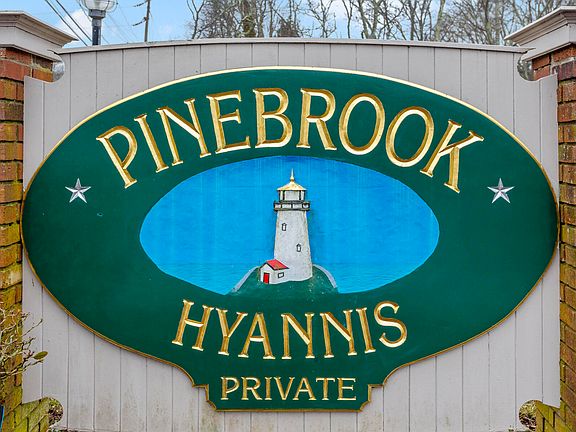 Nestled in picturesque Pinebrook Condominiums of Hyannis, Massachusetts, this charming townhouse offers comfort, convenience, and coastal living. Located within 1-2 miles to Craigville beach, Main Street, Cape Cod Mall, Cape Cod Hospital and Hyannis Harbor. This complex is made up of 57 professionally managed units in a small park-like setting. Residents enjoy the added perk of a clubhouse and outdoor pool, perfect for relaxation and social gatherings. The monthly fee is $353.00, which covers these amenities, basic cable, and ensures that the common areas are meticulously maintained. This townhouse showcases 2 bedrooms and 1.5 baths. The white kitchen opens seamlessly into the living and dining area, adorned with newer vinyl plank floor and new carpet second floor. Step out from the kitchen to your private fenced-in brick patio, perfect for outdoor dining, gardening, or simply basking in the Cape Cod sunshine. Practical features include gas heat and an AC unit, ensuring year-round comfort. The attic access offers potential for future expansion or storage needs. Condominium documents available upon request. No dogs allowed. Cats ok.