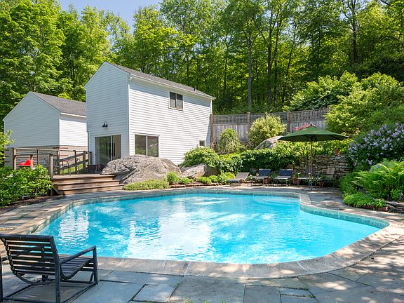 A TREASURE ON TREASURE HILL IN KENT.....A totally modern home built on the frame of a 200 year old apple barn. Expanded and completely renovated over the last few years. A jewel with the most extraordinary perennial gardens up on a hill in one of the best parts of Kent Ct. Kent is one of the most-loved small towns in CT offering shops, restaurants, lakes and galleries. Gorgeous stone walls built and new landscaping ; fully enclosed private beautifully landscaped pool area with pool house; workshop or small barn building; vegetable garden; wonderful stone steps added; magnificent rock garden and herb garden. Only 1.5 hours from midtown Manhattan. The large Master Suite features a magnificent view, huge fireplace, renovated bath and 200 year old barn beams. A great hall connects the main part of the house and the guest wing/studio and provides a comfy evening view of the garden from large new windows. New roof, recently painted, new wood flooring, new furnace and A/C and upgraded electric. The studio/guest wing has a full bath and the 2 guest rooms share a new marble bath. Pool house, workshop, two-car garage, complete privacy, lovely views and lots of sun. Magnificent !