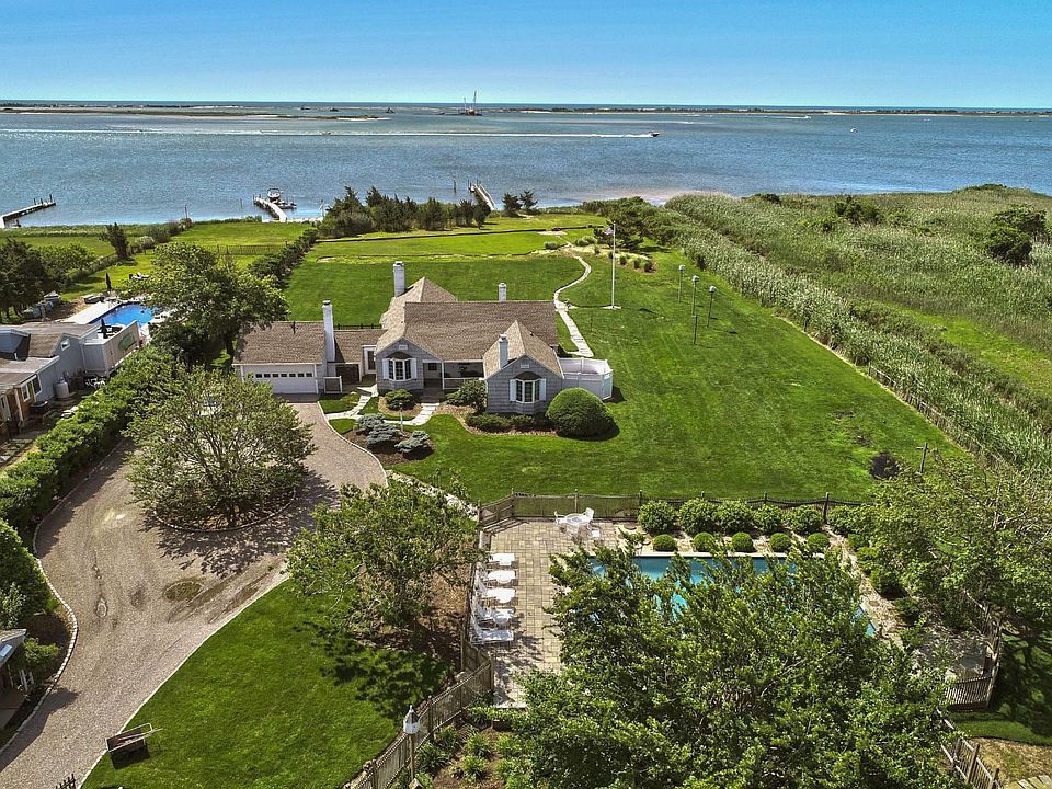 Located at 52 Tuthill Point Road in East Moriches, this waterfront paradise offers blissful views of Moriches Bay. The 2,080 square foot shingled cottage was renovated in 2021 and is ready for its new owners. Drenched in natural light, the living space offers comfortable areas to lounge, entertain and work from home. The living room with vaulted ceilings and the den have wood burning fireplaces and both offer views of the grounds and the bay beyond. The open kitchen is sleek and white with Carrera marble countertops with room for stools, an Arga induction stove, all new stainless-steel appliances and new composite wood flooring, and a separate dining area as well. Three bedrooms, 3 bathrooms with porcelain tile, marble and touches of stainless steel. The primary bedroom has an en-suite bathroom with radiant heated floors. There's a mudroom, laundry room, and a 2-car garage. Step out onto a large deck and enjoy the endless views of Moriches Bay and the wetlands preserve. Launch your kayak, canoe or paddleboard from your own sandy bay beach, or sail away from your dock. When you return, relax by the heated Gunite pool surrounded by beautifully designed garden areas. 52 Tuthill Point Road is truly a gem.