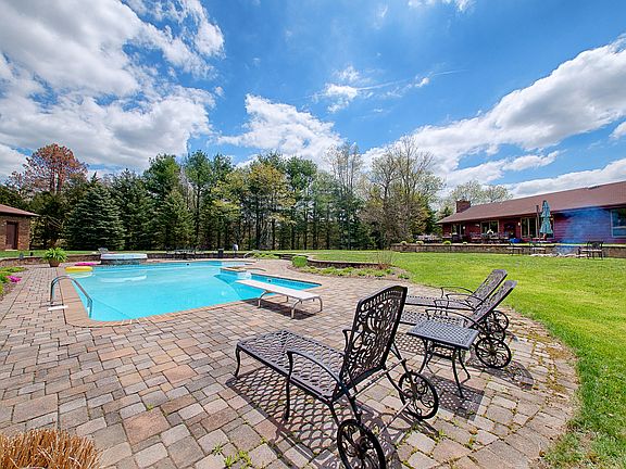 Welcome to your own Shangri-la tucked away in Boonton Township behind a screen of bushes, yet close to schools, major routes and shopping. The front path leads to the expansive foyer with double French doors. At the entrance, alluring views of the park-like back yard command attention. The dining room boasts a large picture window that frames this back yard oasis, the perfect back-drop to this sunny room. Adjacent to the dining room, the formal living room features a floor to ceiling stone fireplace and another picture window overlooking the grounds. The newly updated kitchen with white cabinetry offers easy access for entertaining with sliding doors opening to the large paver patio. Open to the kitchen, the breakfast area and family room provide a large casual space warmed by another fireplace with brick surround. Designed to capitalize on views of the grounds, all principal rooms, and the master bedroom overlook the beautiful gardens, patio, walking paths and pool. Four bedrooms are found on the main level. The master suite with walk-in closet and beautifully updated bath, provides lovely back yard views through the oversized window. Another bedroom is found on this side of the home and is currently used as a home office. The new powder room with beautiful tile and new vanity is located in this hallway. An additional hallway leads to 2 more bedrooms with views of the side yard, another full bath, and a renovated laundry room. Outside, the resort style grounds feature a heated pool with spa, circular paver patio, and walking path to the patio surrounding the pool. Raised garden beds, terraced paver walls and plenty of grassy area complete the professional landscaping at this estate. Enjoy summer days filled with playing bad-mitten, swimming, lounging by the pool and barbequing and summer nights enjoying swimming under the stars and roasting marshmallows by the fire-pit.