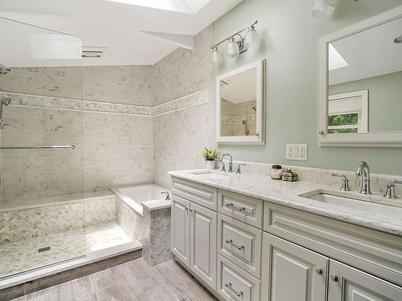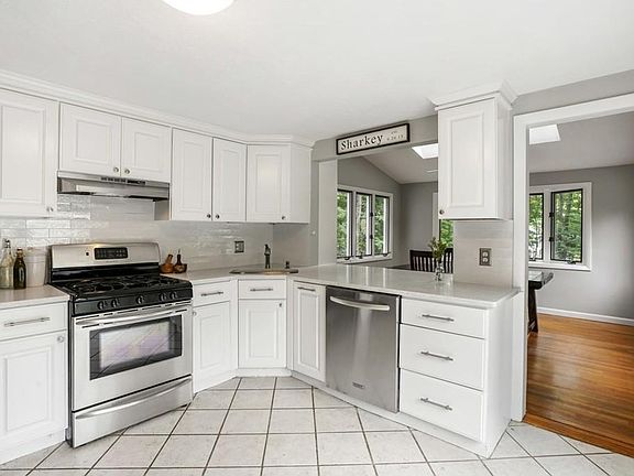 Picture perfect four bedroom home, with incredibly spacious and private, tiered backyard! First floor of this thoughtfully redesigned home offers a spacious, updated kitchen, open to an addition with vaulted ceilings and skylights. From here walk straight out to your deck, overlooking your large and private rear yard. Main floor has a full bathroom, plus flexible layout offering a full bedroom plus an office / 4th bedroom. Upstairs you'll find stunning detail and vaulted ceilings again, with skylights providing endless natural light. Large and thoughtfully renovated full bathroom with spacious walk-in shower and marble tile. Lower level is finished and perfect for playroom or den. Just 5 minutes to the commuter rail and even closer to town center! This location is perfect for those seeking easy access to the city, all while achieving privacy & tranquility in an outstanding community! Open house showings on Sunday 6/28 from 12:00-2:00 by appointment only!