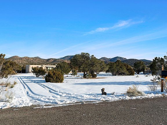 A lovely single-story home inside Eldorado Community. This spacious 1249 sq ft gem offers 2 bedrooms and a full bath with upgrades that include new Marvin windows, freshly painted interior, exterior trim & canales. Tile and carpet flooring throughout with Kiva wood-burning fireplace, vigas & beams ceiling, passive solar Trombe walls in both bedrooms & solar water heater. The exterior has a huge fenced backyard with a storage shed and offers unobstructed foothill views. The home is situated on 1.13 acres of land. Move-in ready and easy to show.
