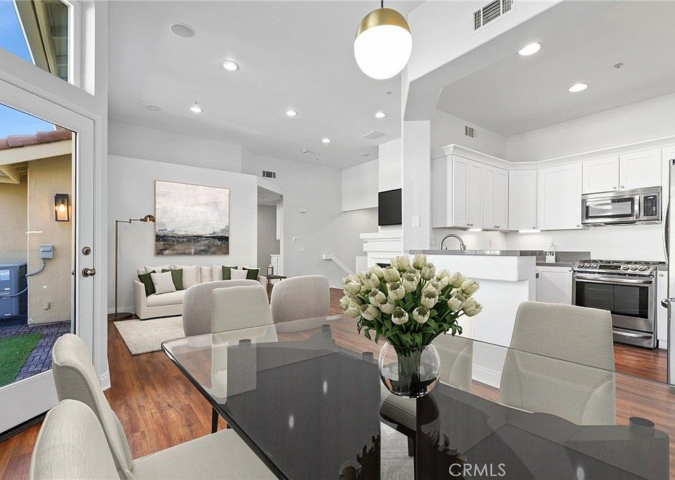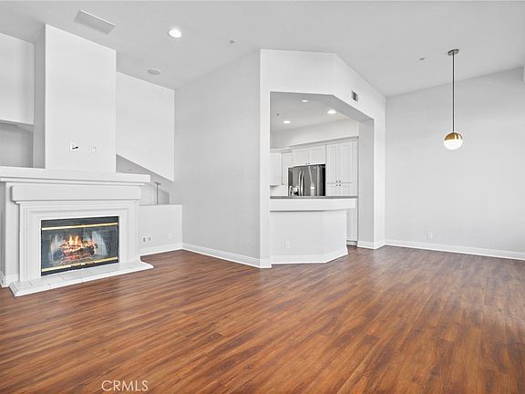 Welcome to this GEM of a home in the great city of Rancho Santa Margarita! This 2 bedroom, 2 bath home in the heart of RSM is located in one of the most sought after communities, Cabo Vista. A freshly painted interior, laminate wood look flooring throughout, a wall flanked with windows to allow natural sunlight in, and an open floor plan makes this living area feel bigger than what it is. The kitchen has been remodeled with shaker style white cabinets, beautiful quartz countertops and full suite of stainless steel appliances (Sink, microwave, freestanding range, refrigerator and dishwasher). Other features include a cozy fireplace in the main living area, surround sound speakers, recessed lighting, smart thermostat, light dimmers plus a separate laundry closet. The primary bedroom suite has a walk in closet with mirrored doors, en-suite bath that includes dual sinks and a walk in shower. A French door leads you outside to the balcony where you can enjoy a perfect summer BBQ or take in the tranquil scenery of the Cabo Vista community. The Cabo Vista pool and spa are just a short distance away. Ownership here also includes access to the abundant Rancho Santa Margarita amenities including pools, the Beach Club, tennis courts, sports fields, parks, playgrounds and so much more! Ranked as one of the safest cities in California, this home surely won't last long! Come see this home today.