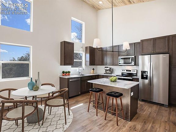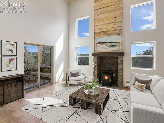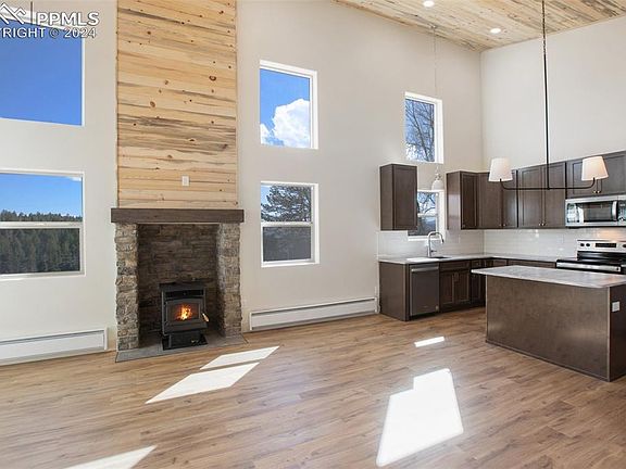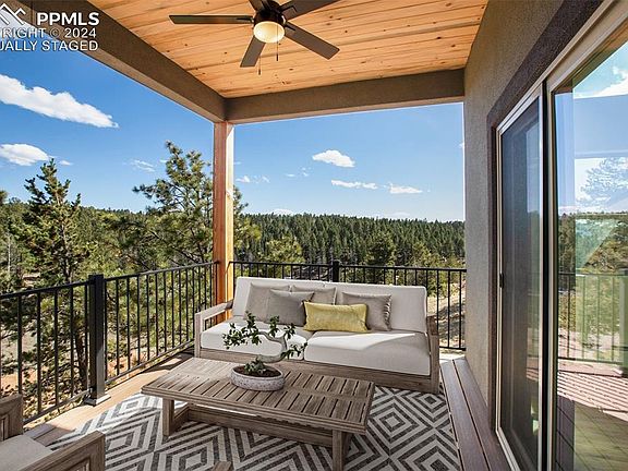 This modern mountain retreat may only be a little over 1,000 square foot, but has been purposely designed to make it feel much larger. Sitting on a tranquil cul de sac with southern views, the new owner will enjoy a quiet neighborhood with minimal traffic. Walk down the custom stone stairs through the front door of this stucco and stone clad gem into an inviting entry that could double as an office space. The vaulted ceiling of blue stain pine draws you into the great room with its 18’wall of windows, breathtaking views and an attractive alcove with a pellet stove rated to heat a much larger room. Adjacent to the great room is an ample kitchen that features: Fabuwood cabinets with extended height to allow for additional storage, granite countertops, custom tile backsplash and stainless steel Whirlpool appliances. The master bedroom features a walk- in closet as well as an en-suite bathroom with a double vanity and walk in shower. The great room and the master bedroom share access to the covered patio with composite decking and beautiful views of the surrounding area. The guest bedroom is located on the other side of the house to ensure maximum privacy. The second bathroom is a full bath with bath/shower combination accessible from the bedroom and great room. Check out the nooks and crannies to find a pantry off the kitchen and a closet for a washer and dryer. Full attention has been given to key construction elements including: High quality duration shingles, Delta fixtures and high quality LVP flooring throughout. This beautiful home is perfectly nestled on a 1/2 acre lot. With proximity to world class fishing, amazing hiking, four wheeling, skiing, amenities and a gambling town make this the ideal Colorado location! It’s just Beautiful! STRs are permitted in this subdivision.