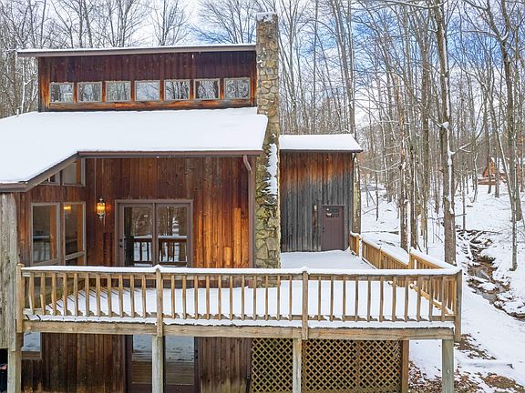 This rustic mountain retreat has a cedar exterior, stone chimney, lots of windows for natural light, large deck, double lot that backs to a parklet--everything you could want in a primary or vacation home. Soaring ceilings, open floor plan, new kitchen with granite countertops & stainless steel appliances. The open floor plan opens to a large deck & is perfect for entertaining. First floor bedroom First floor bathroom with walk-in shower. The upstairs is designed to pamper the owners. Although open, it still affords plenty of privacy, huge walk-in closet, and dedicated bathroom. The lower level has been finished into a beautiful family room with kitchenette that extends outside to a patio area under the deck. A bedroom has been added with sliding barn door and double closets with sliding barn doors. All the flooring and lighting in the house are new and you can enjoy a warm fire in the wood-burning stone fireplace in the Great Room or in the wood-burning stove in the family room. The front door is new, roof is newer with gutter guards, and the heating system & hot water heater are also newer. The architectural lines of this contemporary beauty add character. No cookie cutter in this house. There is forced-air heat & central air conditioning as well as an oversized two-car garage for your cars or water toys. There's lot of parking, too. Enjoy being close to the award-winning Silver Golf Course, the 19th hole restaurant, driving range, cross-country skiing, and indoor pool. Lots of room for biking and walking. Listen to the quiet and enjoy being surrounded by nature. Come take a look and prepare to fall in love. Schedule your showing today before it's gone. REALTORS PLEASE SEE PRIVATE REMARKS.