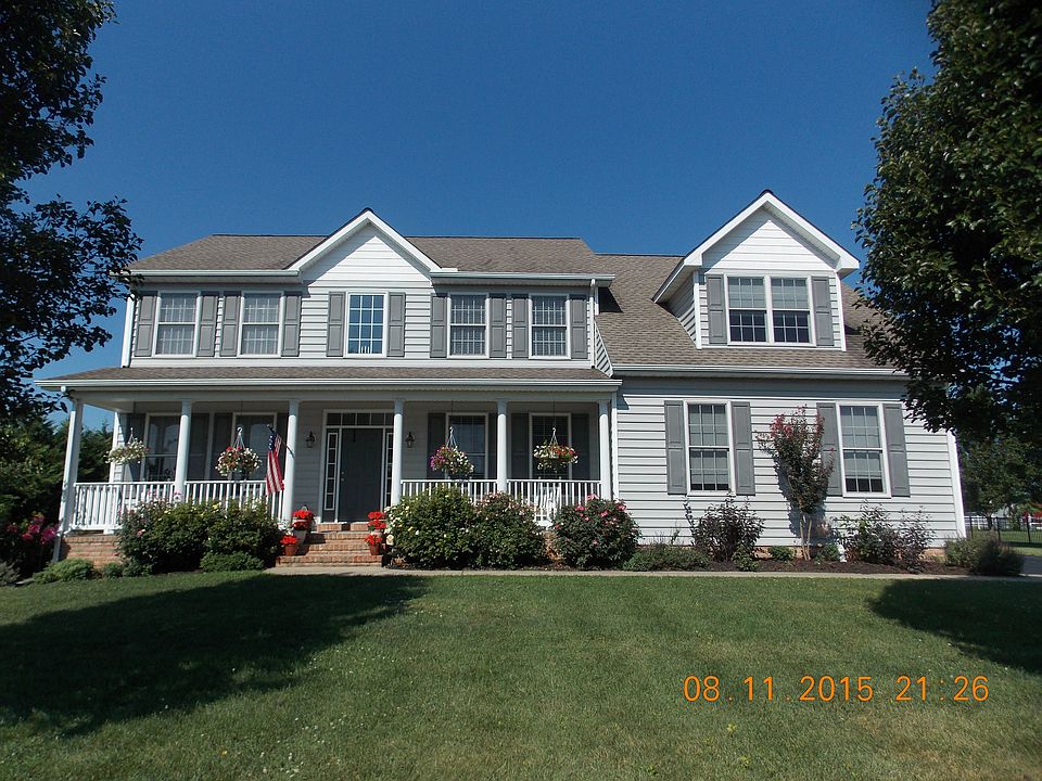 From the moment you see the beautiful landscaping and walk up the steps to the inviting large front porch you will feel at home. Beautifully maintained 4 Bedroom, 2.1 bath home in a community close to everything yet in the country. The kitchen boasts granite countertops, 42" maple cabinets, center island workspace with room for stools, built in desk, tile floors & a sunny breakfast area. This home has a formal living room as well as a family room with a gas fireplace. Formal dining room offers hardwood floors, crown and chair moldings and a bay window overlooking the back yard. The first floor also offers an office. Upstairs you can relax in the spacious main bedroom that has 2 walk in closets and a sitting room. The bathroom with tile floors, separate shower, double corian vanity & a corner Jacuzzi tub is also spacious. Remaining bedrooms are all a good size. Full basement. Out doors you will find a composite deck and a beautiful paver patio for cooking and entertaining.
