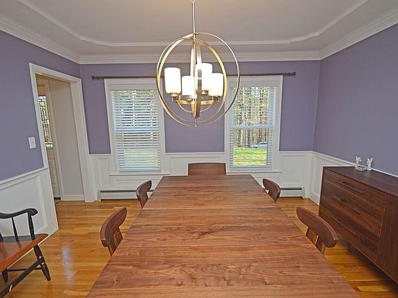 Atkinson-This spacious Colonial is set on 3.47 acres. This wonderful home has an expansive first floor that is set up for entertaining. Features include an open kitchen (with center island) that flows not only to the generous fireplaced family room but also has separate formal dining room and living room. Wood floors adorn most of main floor and staircase. A three-season Sun Room rounds out the first floor overlooking a private fenced in yard plus deck. On the second level, there are 3 bedrooms, including a Master Suite with full bath and generous walk-in closet. There is walk-up attic that could easily be finished for more living area and an oversized 2 car garage under.