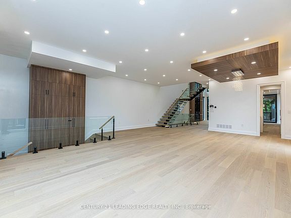 Experience luxury living in this custom-built masterpiece designed by David Small, located just steps from Lake Wilcox. This exclusive home is one of the few with private access rights to the lake and beach, reserved only for select Wildwood Avenue residents. Inside, the home boasts 10-foot ceilings and a breathtaking 20-foot family room, complete with a 2-piece porcelain slab fireplace. Engineered hardwood flooring runs throughout, giving a seamless, elegant finish. The gourmet kitchen is a chefs dream, featuring JennAir appliances, a16-foot quartz island, and a stunning one-piece quartz backsplash with a pot filler. There's also a convenient servery with a wine cooler, leading to the large composite deck balcony. The second level offers a lavish master suite with a private balcony, a heated 5-piece ensuite, and spacious his-and-hers closets. Every bedroom has its own ensuite and custom closets, with additional features including two balconies and a second-floor laundry room. The finished walk-out basement is perfect for entertainment, with 10-foot ceilings, heated floors, a bar, and rough-ins for a theater room. The basement opens to a beautifully landscaped outdoor space. Private access rights to the lake and beach for your parties/boat lunch. The home also includes fiberglass silenced doors and floor-to-ceiling windows.