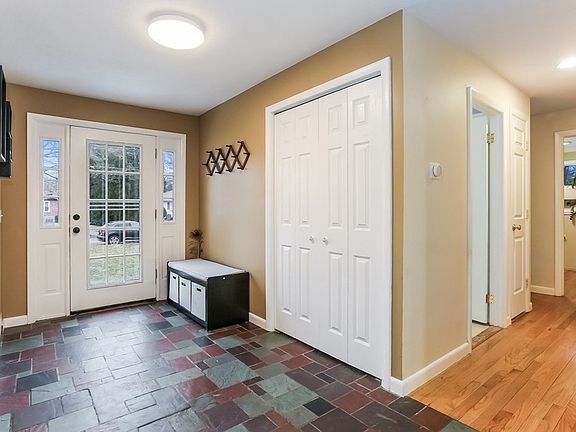 RENOVATED executive ranch featuring great location, inviting interiors & versatile floor plan sits on ample lot w/fenced backyard. Spacious living room w/oak hardwood flooring, two-sided wood burning fireplace w/stacked stone surround & huge picture window opens right up into dining room. Remodeled kitchen features white cabinets, quartz tops, mosaic tile backsplash, ss appliances & island. Convenient mudroom area houses laundry & maple cabinetry. Charming sunken family room has new wood laminate flooring & leads to both backyard and two car attached garage. Private bedroom wing highlights updated full bath w/linen closet, two bedrooms w/oak hardwoods & closets plus primary suite showcasing two double closets & updated bath w/shower. Walk-out lower level with concrete and updated vinyl flooring offers great potential for future living space as well as additional square footage. Prime location within short distance to all three levels of school & town center w/shopping & restaurants.