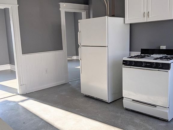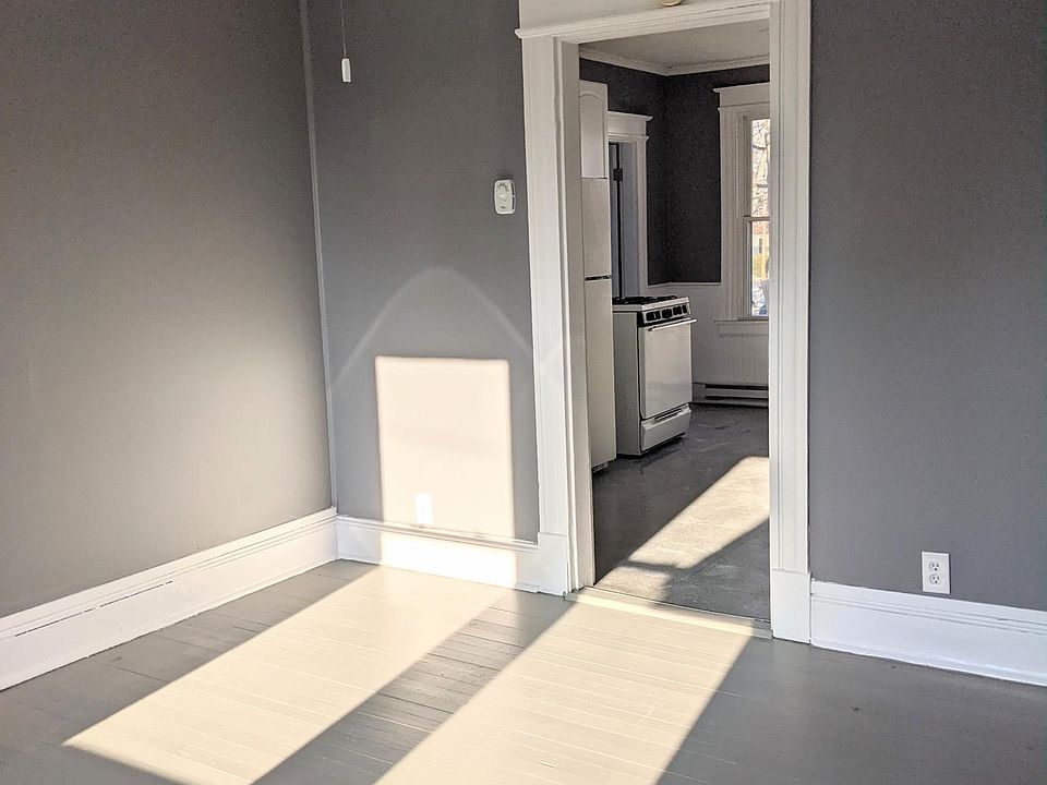 Freshly painted, two bedroom apartment with new flooring available for immediate move-in! This is a first floor unit with a balcony/deck area for you to enjoy! We also provide off-street parking and shared coin-op laundry machines. The bathroom includes built-in shelving, as well as a new fan and towel bars installed. The kitchen is spacious and also includes a pantry for additional storage. Cats and dogs are welcome here! Text or email us to schedule a tour. Owner pays for water, sewer, and trash. Tenant pays for heat, hot water, gas, and electric. Animals accepted with a one-time pet deposit of $250 and an extra $25/mo per animal. Off-street parking provided- also ask about garage parking we have available!