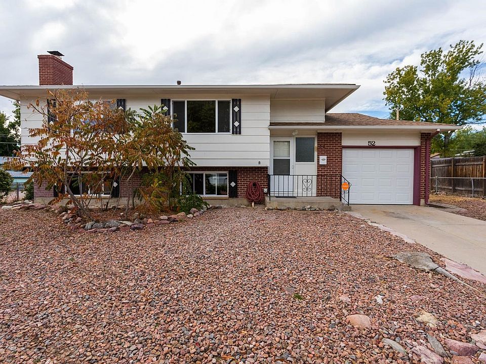 This charming bi-level home is located close to Fort Carson, schools, and parks* As you go upstairs, you will be greeted with the Living Room, featuring wood floors and a large window that allows natural light into the home* The eat-in Kitchen has a walk-out to the deck, ceramic tile floors, and a tile backsplash* The Master Bedroom, additional Bedroom, and full Bath are also upstairs* Downstairs is a spacious Family Room with wood panel walls, a wood burning fireplace with brick surrounds, and numerous large windows that allow natural light into the home* There are 2 Bedrooms, a 3/4 Bath, and Utility Room with Laundry area and walk-out on the lower level of this home* This home offers a large covered deck with patio area below* The Backyard is huge with tons of potential* There are brand new vinyl windows installed throughout the entire home*