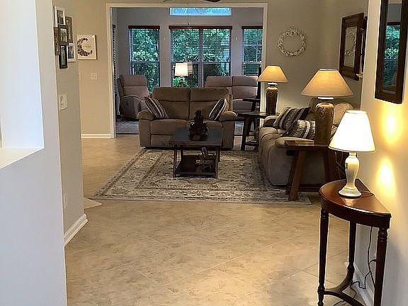 A beautiful and extremely well maintained brick front house, in a highly desirable and well established neighborhood, Linksbrook at Prince Creek. Only minutes to the beach and many shopping venues, this house is conveniently centrally located. A variety of amenities such as a beach entry style pool, large fitness/activities center and tennis courts awaits you at a very reasonable HOA fee. This 3 bedrooms, 2 bathrooms and bonus room, features many upgrades such as large tile flooring, fireplace with gas logs, 42 inch high cherry finish cabinets, wood window coverings, built stereo speaker and intercom systems. A finished bonus room over the garage provides a place to escape and relax from the other activities in the house. Recent upgrades to the house include new interior painting, 2017 Trane HVAC system with a 10 year warranty and a new roof installed in 2021. Among the privacy of the back yard adjoining a natural conservation area, you can enjoy the wildlife, as you set in your comfortable recliner, on the beautiful paver patio.