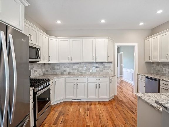MOVE RIGHT IN TO LUXURY IN THIS PRIVATE CUL-DE-SACE NEIGHBORHOOD! This 5 bed, 2.5 bath Colonial offers an impressive eat-in kitchen with tons of Quartz countertops, ss Whirlpool appliances, breakfast bar, & an abundance of white Shaker cabinets! Gather guests in the open floor plan kitchen and living room with gas fireplace and gleaming hardwood floors the formal dining room is conveniently located off the kitchen, and glass sliders lead to the Trex deck overlooking the large private backyard. A half bath, coat closet, and main floor laundry with storage space complete the first floor. Retreat to your private Master Suite complete with oversized walk-in closet and spa like Master Bath with ceramic tiled floor, marble soaking tub, stand-up tiled shower, and His and Hers double vanity. All four guest bedrooms are spacious with large closets and large windows allowing tons of natural light. Don't forget the convenience of central AC, oversized two car attached garage and quality finishes!