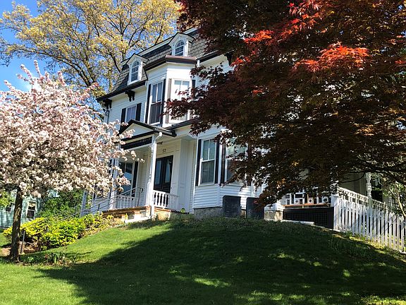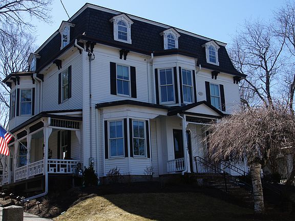 History meets modern convenience in this stately Mansard Victorian situated on over 20,000 sq ft of professionally landscaped grounds on sought-after West Newton Hill. Large bay windows and gleaming hardwood floors allow natural light to illuminate the period features in the foyer, front-to-back living room and formal dining room. The open-floor plan kitchen features a large island, breakfast nook and sitting area as well as French doors to the patio and backyard. Mudroom with built-in storage, half bath, and den round out the first floor. The second floor features a gracious landing and Master Suite with walk-in closet and en suite bath. Two family bedrooms, updated laundry room and marble family bath complete the second floor. The Accessory Apartment on the third floor has two bedrooms, bath, and kitchen. Finished Basement includes full bath, family room and office. Central Air and smart features such as Nest thermostats and Ring doorbells make living a breeze.