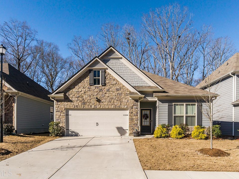 Better Than new "Smart Home ' step less ranch that is move in ready! Fenced in back yard with 2 gates. This home comes with LG steam washer, dryer and refrigerator. Kitchen with granite countertops stainless steel appliances and large island overlooking breakfast and spacious family room with cozy fireplace. Mohawk Aberdeen Grade luxury Vinyl 20 mm wear with cork backing. Stunning hardwood like LVP Flooring through out entire home . Covered patio in back. Gas logs remain in fireplace. Owner suite has large walk-in closet, dual raised cultured marble vanity, separate shower and garden tub. Popular Claiborne plan. New gutter guard leaf system. Home backs up to green space.