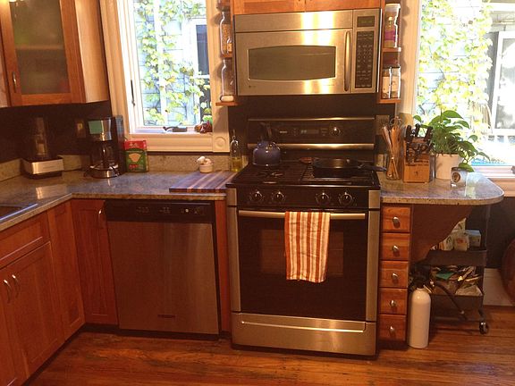 Updated condo in Jamaica Plain in an awesome location. 7 min walk to Stony Brook T stop, 6 min to Whole Foods or Stop and Shop. The Southwest Corridor is at the end of the street, which will take you on bike paths to Forest Hills or all the way downtown. The condo is on the 2nd floor of a quiet triple decker on a tight-knit street with lots of families. Includes in-unit laundry, a deeded parking space, two private porches, new appliances and a small back yard. Landlords are owners and will live next door. No broker or realtor fees! 1-year lease minimum, with longer terms considered. Owner pays for water, renter pays gas, electric, and internet. Small pets (under 25 lb) considered. Nonsmoking property.