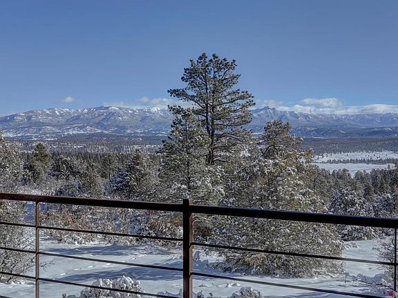 New to the market is this Mountain Modern Gem!!! Perfectly situated in the prestigious Colorado Timber Ridge subdivision in Pagosa Springs, being one of the nicest areas in the entire County and this lot is the cream of the crop. Tucked in, private with unbelievable views of the mountains and nearly no other homes in sight. So much thought was put into this custom home, from finding the perfect place on the lot, to the low maintenance materials, to the open floor plan and strategic placement of windows to maximize the panoramic mountain views from nearly every room in this expertly crafted home. Outdoor living is a breeze from any area of this home with the upstairs balcony, private patio from the South wing, the expansive deck on the rear of the home and the beautifully landscaped yard and front patio to lounge on. The newly remodeled kitchen offers ease of use and style in a great layout with stainless steel appliances, a separate food storage pantry, and gorgeous Arabescato marble countertops. The thoughtful design was executed with separate sleeping areas on each side of the home in addition to an upstairs primary bedroom with a private balcony, adjoining walk-in closet, and a spa-style bathroom complete with a soaking tub to enjoy the views from. A recessed bar area, butler's pantry in the laundry room, and separate office nook allow for additional storage space and organization. A newly installed boiler upgrade for the in-floor heat system offers more efficiency and compact design. This property strikes the perfect balance between luxurious comfort in daily living and also the ideal place to entertain. With all this home has to offer it would be wise to set up your private tour today...
