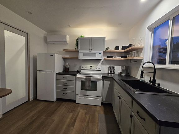 Experience modern minimalist living in this beautifully renovated, fully furnished studio located in The Dalles, Oregon. Thoughtfully designed for comfort and convenience, this studio features a full kitchen complete with a large pantry, microwave, and dishwasher perfect for anyone who enjoys cooking at home. All utilities are included in the rent, including high-speed internet, making budgeting simple and hassle-free. The unit offers a designated washer and dryer, air conditioning, and a private patio that extends your living space outdoors. Enjoy a gazebo-covered seating area, gas BBQ grill, picnic table, and a gas firepit ideal for relaxing or entertaining. Residents also have access to a private workout area, extra storage unit, and off-street parking. Located just minutes from shopping, restaurants, and local amenities, this studio offers easy access to everything The Dalles has to offer. Perfect for professionals or those seeking a low-maintenance lifestyle in a well-maintained setting. Lease term is negotiable.