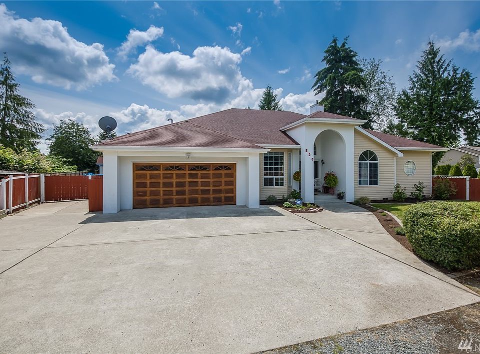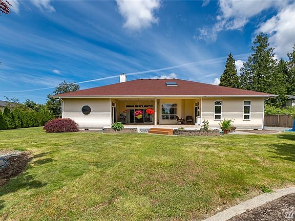 The perfect rambler! Beautifully appointed one story home-10 ft ceilings-open flowing layout-huge granite kitchen counters with room for everyone-master bed with luxurious master bath and walk in-covered tile deck off back perfect for entertaining-two outbuildings with room for everything-wonderful water feature-mature landscaping with fruit trees all nestled on a half acre fully fenced lot with room for RV's or a dozen cars. Don't let this one get away-one story living on private half acre lot!