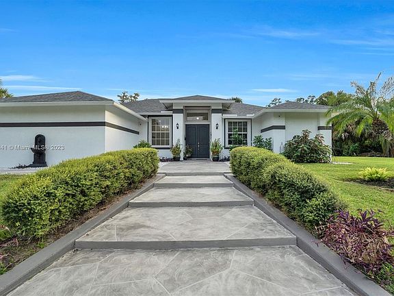 As you enter the home, you'll be greeted by the spacious living area, 10ft walls and vaulted ceilings. This home has 3 bedrooms, 2 bathrooms with a den, and sits on a nearly 3-acre lot. The kitchen features soft-close hardwood cabinets and granite countertops. Additional highlights include new roof, remodeled interior, automatic gate, surveillance system, impact doors, accordion shutters, an underground propane tank with generator hook-up, and a reverse osmosis water filtration system. Look no further, this lovely home has it all.