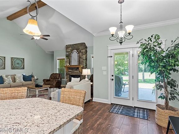 HOT Listing Alert! This custom built home in the heart of Saraland sits on 1.6 acres and offers 3 bedrooms & 2 baths on the main level and a bonus room with its own full bath upstairs. The home offers tasteful coastal colors throughout and you will love the rich color of the wood grained tile floors in the main living areas. The kitchen boasts a gas range and granite countertops with a breakfast bar, breakfast room and an adjacent formal dining room. Buyers will be tempted to sit and stay a while on the back porch that overlooks a quiet back yard with plenty of room for a shop, pool or garden. For the moms and dads with large SUVs, trucks or boats, the house has a spacious 24x24 garage for easier parking. This home has a tankless water heater and the staked stone fireplace is also plumbed for gas. Best of all, this home is Gold Fortified and has fabric shield storm panels! Don't miss out on this one!