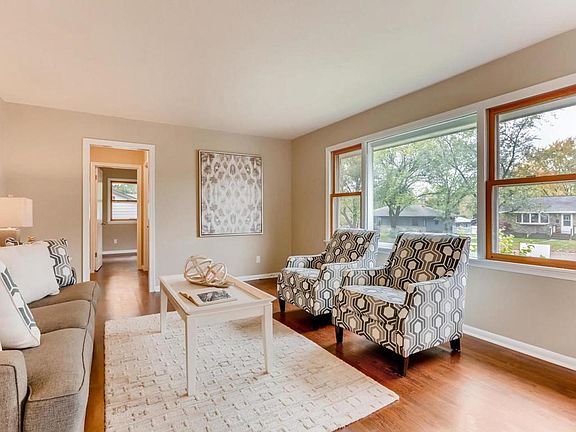 Rambler/Ranch style property w/lrg, flat backyard is adjacent to one of the most beautiful corporate campuses in MN. 3-bdrm home has stucco & brick exterior, 2 car garage w/add'l storage area, and newer dbl-hung windows, newer roof. Main floor features updated kitchen w/newcabinets, ss appls, tile floor. Refinished hdwd flrs. Owner's suite w/3/4 bath & walk-in closet; 2nd bdrm, and full bath. LL has lrg bdrm, 3/4 bath, & finished rec. rm. Great color palette & lighting throughout! Awesome!