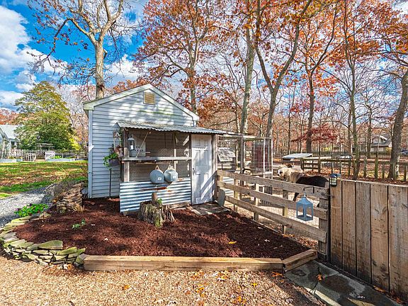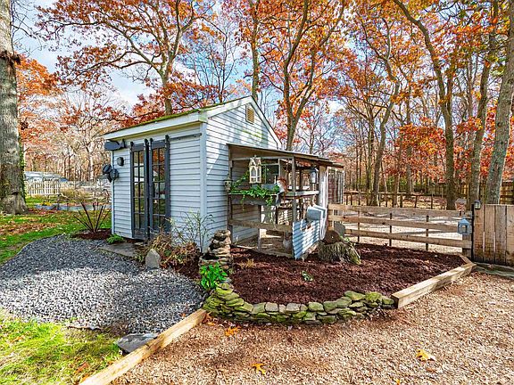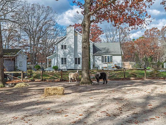 Welcome to this stunning turnkey property, where Hamptons-inspired style meets a serene homestead lifestyle. Outside, you’ll find expansive raised garden beds, a dedicated livestock paddock with run-in shelters, a full-sun chicken coop, and a large garden shed—all set within an immaculately maintained backyard featuring a spacious two-tier patio and a custom fieldstone fire pit. This property is truly designed for both relaxation and effortless entertaining. Inside, natural light pours through the home from dawn to dusk, enhancing the warm and inviting atmosphere. The second floor offers three generously sized bedrooms and two full baths, while the first floor features a fourth bedroom and a half bath, perfect for use as a sunlit office, game room, or playroom. Recent upgrades include all new appliances and a brand-new central air/heating HVAC system, providing comfort and peace of mind for years to come. Two full attic spaces, an oversized two-car garage, and a dedicated stone boat/trailer parking area offer exceptional storage flexibility. From the airy Cape Cod charm of the open entryway to the tranquil farm-and-garden surroundings, this one-of-a-kind property delivers an unmatched sense of serenity—yet is located just moments from every convenience, including excellent schools, shopping, dining, bay access, a top-tier golf course, and the Parkway. A rare blend of luxury, lifestyle, and location—this property is truly a must-see.