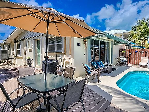 Beautifully updated 3 bedroom, 3 bath 1/2 duplex POOL home facing east. Concrete seawall with deep water dockage. Spacious bedrooms, open living area overlooking the pool and canal. Licensed vacation rental with good bookings