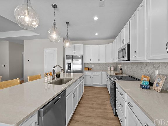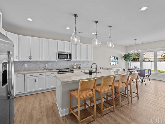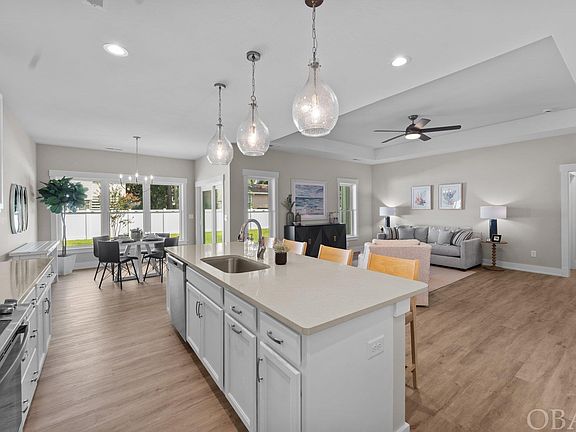Welcome to your coastal craftsman dream home, designed for both elegance and efficiency! Step into the foyer that leads to the spacious great room featuring a trey ceiling, perfect for relaxed living and entertaining. The chef's kitchen is a culinary delight, offering ample storage, a separate pantry, oversized island, solid surface countertops, custom tile backsplash and stainless-steel appliances. Adjacent to the kitchen is a large dining space with multiple windows that seamlessly flows into a covered patio, perfect for entertaining. The owner's retreat provides a peaceful escape with private entry to the rear covered patio, an ensuite bathroom, dual sinks, and a spacious walk-in closet. At the front of the home, private secondary bedrooms share a well-appointed hall bath. Convenience is key with an oversized laundry and mudroom that leads directly to a 1.5 car garage, perfect for your vehicles, bikes, and beach gear. Enjoy the fenced backyard, ideal for outdoor activities and relaxation. With its thoughtful design, this coastal craftsman home offers luxury features that include LVT flooring in the main living areas, tile flooring at full baths, custom cabinetry, Delta plumbing fixtures, Craftsman style trim throughout, solid surface countertops, and designer lighting fixtures. This home truly embodies coastal living at its finest. Water Oak is a sound front community of 70 homesites featuring a manicured entry, multiple green spaces, and a private community soundfront pier with amazing sunsets and kayak launch. The central location offers easy access to the beach, several miles of the Bay Drive multi-use path, disc golf, restaurants, and beach shopping. Don't miss the chance to make this home yours! Schedule your tour TODAY!