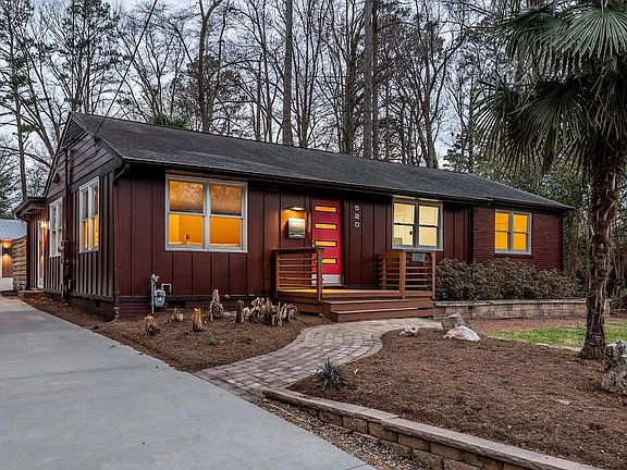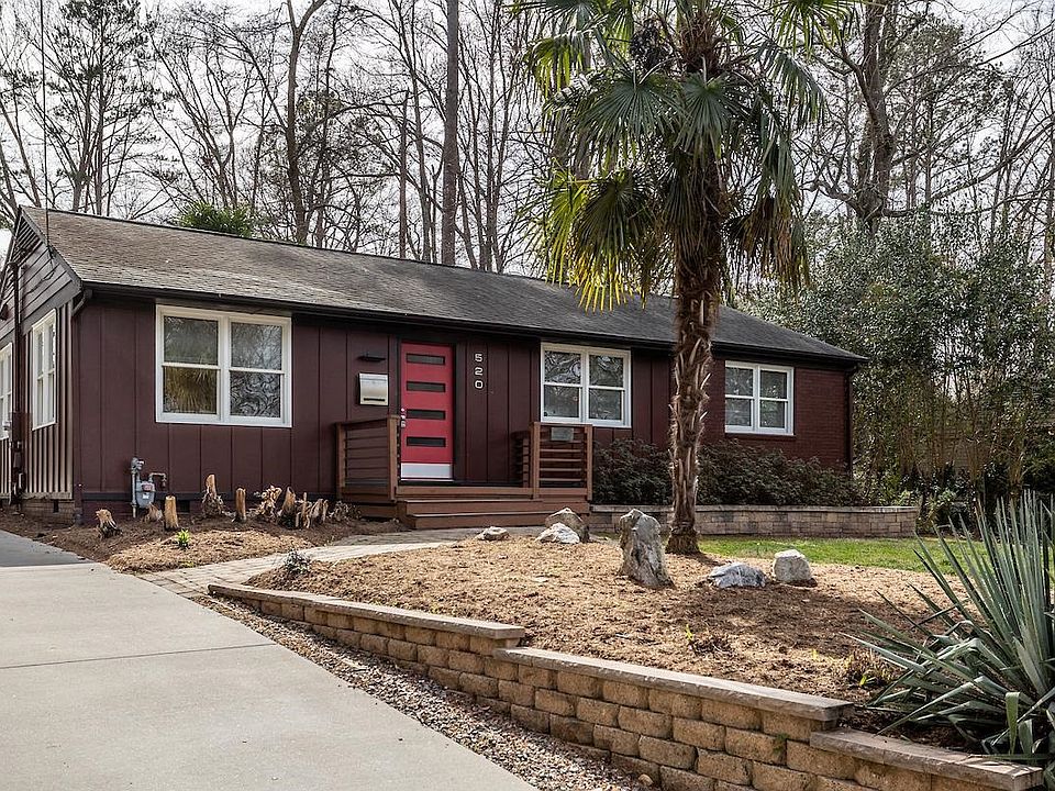 This mid-century charmer features an oversized primary bedroom with 2 closets and a 5 piece ensuite bath. Hardwood floors extend throughout the entire home with the exception of 2 tiled bathrooms. Spacious living room/dining combo, additional den with freestanding vintage fireplace, large kitchen with 3 walls of cabinets, 36" gas range and granite countertops. Step outside and you will immediately forget you are only 1 mile from Downtown Raleigh as you are surrounded by tall palms, banana trees and lush plantings with plenty of room to enjoy the mature trees and private fenced yard from the expansive covered deck. This .36 acre lot also features a huge detached 2-car garage with a heated and cooled 240 SF studio, flex room or perhaps a future ADU. Walk 2 blocks to Gateway Plaza for shopping, dining, yoga, a hair salon (and Woofgang for the fur babies) and more.