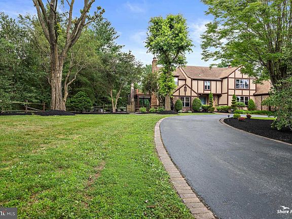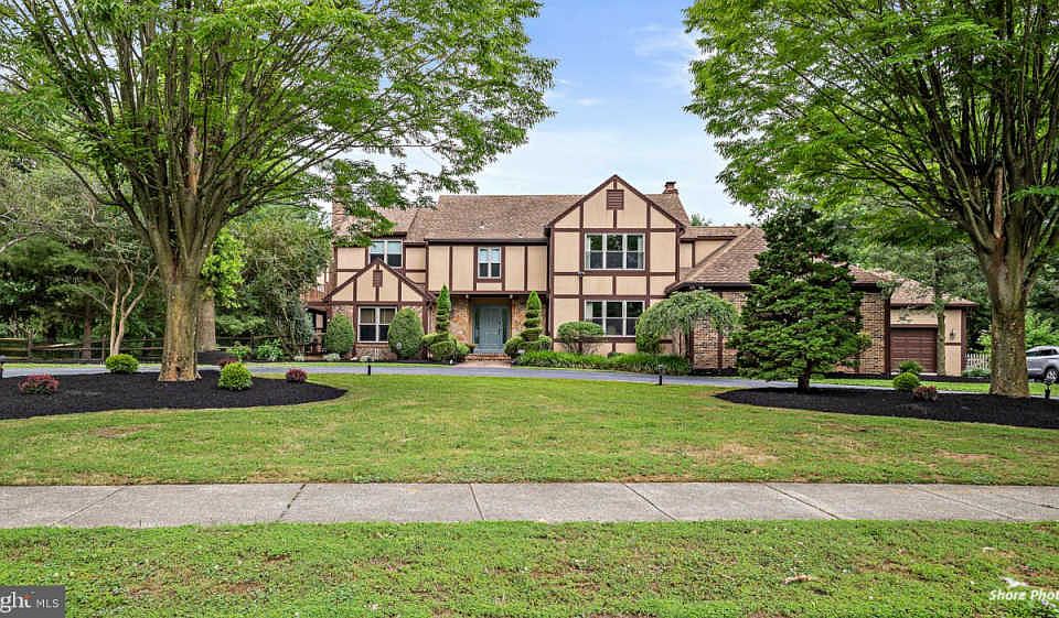 This one of a kind 5 bedroom, 4 1/2 bath tudor style home located in Moorestown. House includes 2nd floor decks, back yard oasis, a total of 5 fireplaces and a salt water pool. You will find fireplaces in the Master Bedroom, living and dining room and basement. The family room has a wood burning fireplace and opens to the back deck where you will find another wood buring fireplace. Eat in kitchen has granite countertops, island, tile flooring and stainless appliances including a sub zero refrigerator. The first and second floors offer hardwood throughout and the office included built in shelves. Master bedroom has vaulted ceiling, walk in closet with stairs to a dressing loft offering storage and a cedar closet. The master bathroom has been updated with a claw foot tub and stand up shower. Large deck off of master bedroom with a spiral staircase leading to the lower deck and pool area. A second bedroom also has a deck that overlooks the pool. The finished basement offers a bedroom and full bath, bar, gas fireplace, a french drain system, an electric/gravity sump pump and bilco doors for outside access. There are 3 garages, one is a 2 car garage and a single car garage with upgraded electrical for use with an electric car, 220v in smaller garage. The outdoor oasis includes a salt water pool with a sun deck and cascading waterfall, outside speakers and a wooden playset. Pool was completely redone in 2009 for $140,00+. It's maintained weekly. Pool Vac and lights were replaced in 2020. There is a 4 zone air conditioning system which is controlled by 3m remote, a 2 zone heating system (1 year old). 4 year old hot water heater. All new Anderson windows were installed. Roof was replaced in 2008 with 30 year material. Recessed lighting, 14 camera security system (ethernet/internet), central alarm with fire, indoor/outdoor speakers, sprinkler system, intercom and sprinklers throughout. Sq ft does NOT include the finished basement.