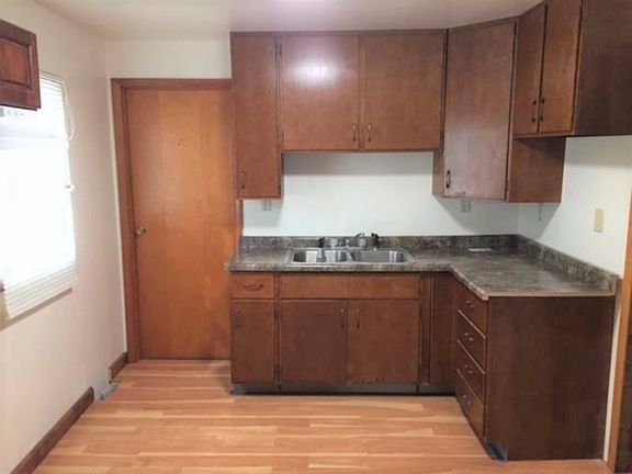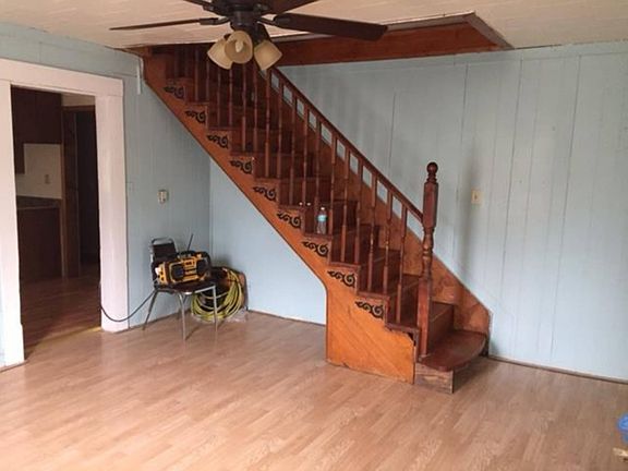Three bedroom home on corner lot with extra land for a big yard Entr: covered front porch has metal roof and deck railing. LR: painted walls, new laminate floor. Open staircase to upper level Kitchen: wood cabinets, new counter top and sink. Laminate that matches living room and painted walls Dr: grey walls, laminate flooring new window air conditioning unit. BR: vinyl hard surface floor, thermopane windows and painted walls BR: laminate floor, painted walls, thermopane windows Bath: ceramic tile surround on bath tub, new fixtures, white sink and vanity. UP: Bedroom: very large room with vinyl tile floor, freshly painted walls and large closet Basement: large basement has been divided into rooms and has some drywall, and can be used for storage or additional living space. Gas forced Air furnace. Backyard: large fence around this yard which is 1 1/2 lots Metal roof for no maintenance. code 240 07052017 RE tax: $765.24 no exemptions