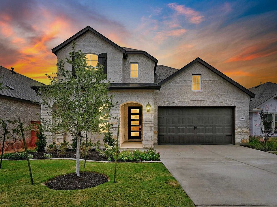 Green space behind and a beautiful, covered patio to enjoy it! The home boasts a two-story entry and main living area with modern iron railings at the interior balconies. The formal dining room, dine-in island and breakfast area combine to provide seating for a crowd! The primary suite, study, and 2nd bedroom are down and there is a game room loft, media room and two more bedrooms upstairs.