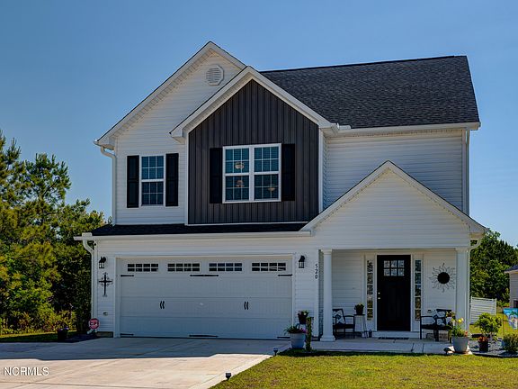 Welcome to this charming, like-new home in the desirable Sterling Farms neighborhood! You will notice the expanded driveway and covered front porch upon arrival. As you enter the first floor through the foyer, you will be greeted by an open floor plan connecting the kitchen, dining area and main living space. Cozy up near the fireplace in the living room during cooler nights. The kitchen includes stainless steel appliances and plenty of counter space including a large breakfast bar making it great for cooking and entertaining. Upstairs you'll find all 3 bedrooms including a spacious primary suite with an oversized dual sided walk-in closet. The primary bath features cultured marble dual vanities as well as a garden tub and walk-in shower. The backyard includes a concrete patio and lots of space with so much potential. This home sits on one of the larger lots (.39 acres) in the neighborhood. Come see this beautiful home, only 20 minutes to Downtown Jacksonville and Camp Lejeune, and make it yours!
